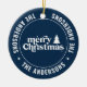 Retro Navy Blue Christmas Modern Minimal Unique Ceramic Ornament