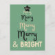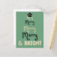 Retro Navy Green Christmas Tree Merry and Bright Holiday Postcard