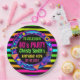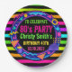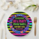 Custom Retro Neon 80’s Birthday Party Paper Plates. Personalized neon 80s theme tableware for adult milestone birthday celebrations.