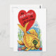 This postcard features a retro illustration of a goldfish in front of a heart. The message says, "No fish tale you're my Valentine".