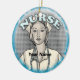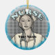 Retro Female custom Nurse ornament,registered Nurse t-shirts and Nurse apparel by ArtMuvz Illustration. Nurse gifts,Nurse t-shirt, hats, nurse tote bags, ornaments. Nurse shirt, and Nurse apparel, gifts. TO PERSONALIZE add your name or add text instead. Customise this Female Nurse ornament to make it uniquely yours or to give as a personalised gift