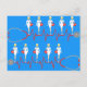 When you see this Retro Nurse Postcard, your heart will skip a beat. Don't worry, these nurses are prepared to both cause and cure your arrhythmia. Inspired by 1960's minimalist art, this design features a vibrant blue background. There are rows of identical retro nurses in classic, white nursing uniforms, complete with pillbox hats. The lovely, poised ladies are standing at attention with red medical bags in tow. Each row of shapely, blonde healthcare providers is standing on a giant stethoscope, which also looks like the line from a heart monitor. This is perfect for nursing students, recent nursing school graduates, RNs, LVNs, health nuts, hypochondriacs, and people who simply binge watch too many medical shows for their own good.