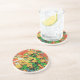 I'm not sure how much moisture these will soak up, haven't had a chance to try them out, but they look good and I like the cork backing. The printing is fine ~ and really looks cool with an artisan's hand made "Hurricane Martini" glass sitting on top of my painting (on the coaster) in my studio.