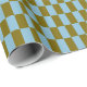 Retro Olive Green Blue Earthy Chequerboard Pattern Wrapping Paper
