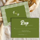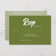Retro Olive green Minimalist Checkered Wedding RSVP Card