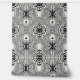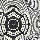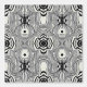 This striking retro-inspired black and white pattern features intricate, wavy lines and symmetrical shapes in an optical art style. The hypnotic design creates a sense of movement and depth, ideal for retro decor, fashion prints, or graphic design projects seeking a bold, vintage aesthetic.