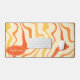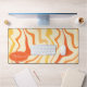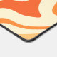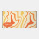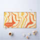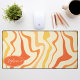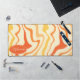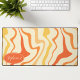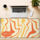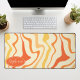 Add a splash of retro energy to your workspace with this vibrant groovy swirl desk mat. The design features a dynamic abstract pattern of wavy lines in shades of orange, yellow, and cream, capturing a playful 1970s aesthetic. A customisable oval nameplate in the corner provides a professional, personalised touch to your home office or creative studio. This mat offers a smooth surface for effortless mouse movement while protecting your desk from daily wear and tear. It is the perfect functional accessory for anyone looking to combine vintage style with modern productivity.