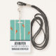 A badge with an illustration of birch trees with orange birds sitting on their branches. Retro green coloured background. Personalise with your name and profession.
