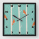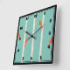 Retro Orange Birds on Birch Trees Illustration Square Wall Clock
