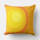 Retro style big circle pattern in yellows and orange shades on throw cushions.
