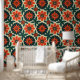 Embrace vintage charm with this striking folk art-inspired floral pattern featuring bold orange daisies against a warm cream background. The design showcases detailed botanical elements with emerald green leaves and decorative circular accents, creating a perfect blend of retro and modern aesthetics. This eye-catching pattern captures the essence of mid-century modern design with its bold colour palette and stylised floral motifs. Ideal for home decor, fashion accessories, and any project requiring a touch of vintage botanical elegance.