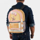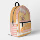 Backpack featuring a retro striped design with polka dots and a cute bear with balloons. In lovely pastel pink and orange colours. The bear is optional and you can also add a custom photo if you like. A great backpack for baby needs.