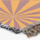 Orange and purple retro sunburst pattern on home decor.