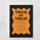 Set the tone for your Halloween party with these retro orange and black Trick or Treat invitations. The design features “Trick or Treat” in bold, black retro lettering framed by a groovy-shaped orange border on a black background. Personalise this vintage-inspired Halloween party invitation with your event details for a fun and eye-catching design your guests won’t forget.