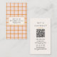 Retro Orange Wavy Chequered Trendy Boho QR Code Business Card
