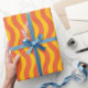 wavy stripe wrapping paper is a Gorgeous Decorative Christmas wrapping with an orange and yellow wavy stripe pattern for a unique fun and groovy xmas decor or birthday party gift wrapping.