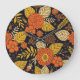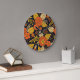 This wall clock features retro colours including shades of yellow, orange, brown, and navy blue. It's almost like being back in the 1970s.