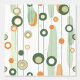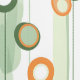This artwork features a sleek and minimalist pattern of circular and elongated shapes, arranged in a vertical alignment reminiscent of retro-futuristic designs. The composition uses a fresh colour palette of green, orange, and soft cream, creating a harmonious and balanced look. The circles, some solid and some outlined, appear to float along thin vertical lines, evoking the imagery of planets and orbits. The combination of clean lines and soft shapes gives the piece a modern yet nostalgic feel, blending mid-century modern aesthetics with a touch of contemporary style.