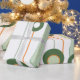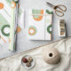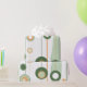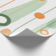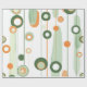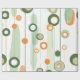 This artwork features a sleek and minimalist pattern of circular and elongated shapes, arranged in a vertical alignment reminiscent of retro-futuristic designs. The composition uses a fresh colour palette of green, orange, and soft cream, creating a harmonious and balanced look. The circles, some solid and some outlined, appear to float along thin vertical lines, evoking the imagery of planets and orbits. The combination of clean lines and soft shapes gives the piece a modern yet nostalgic feel, blending mid-century modern aesthetics with a touch of contemporary style.