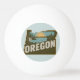 Ping pong ball design features retro artistic Oregon state silhouette with text on light blue background