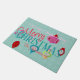 Retro Ornaments Teal Christmas doormat has a vintage feel perfect for anyone that loves midcentury modern designs. There are seven hand painted retro ornaments above a starburst and atomic symbols pattern. The greeting says, Wishing Everyone a Very Merry Christmas, The Johnsons. You can personalise this with your own greeting, or keep it and just personalise with your family's name. This doormat is a non-slip rubber that won't crack or buckle, this mat resists fading, mould, and mildew and can be easily cleaned with a hose. This beautiful doormat is an excellent addition to any home to greet your guest during the holiday season.