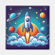 Retro, outer space rocket magnet