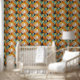 Revitalise your walls with this retro-inspired peel and stick wallpaper, showcasing a vibrant pattern of orange, teal, and gold oval shapes. Perfect for adding a bold statement to any room, this high-quality wallpaper combines retro charm with modern convenience. Elevate your space with this stylish and eye-catching addition that reflects your unique sense of style.