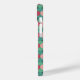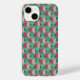 This phone case has a mid-century modern design of ovals with semi-circles inside them in retro Christmas colours.