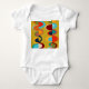 This baby bodysuit has a mid-century modern design of half ovals in a retro colour palette. Colourful, bold, fun! Look for the matching pacifier, bibm and throw pillow.