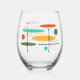 Retro Ovals & Lines Stemless Wine Glass