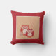 The pillow features a pair of cheerful owls in retro warm colours among floral vines.