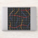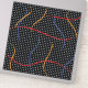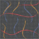 Retro 1980’s style primary colour paint strokes splatter pattern on a geometric black and white dotted background.