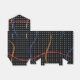 Retro 1980’s style primary colour paint strokes splatter pattern on a geometric black and white dotted background.