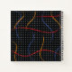 Retro 1980’s style primary colour paint strokes splatter pattern on a geometric black and white dotted background.