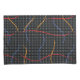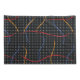 Retro 1980’s primary colour paint strokes spatter pattern on a geometric black and white dotted background.