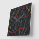 Retro 1980’s primary color paint strokes spatter pattern on a geometric black and white dotted background.