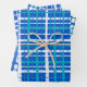 Retro Painted Plaid Pattern in Blue and White Wrapping Paper Sheet