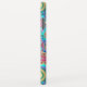 Cool retro colourful paisley pattern. Blue-green with red and yellow accents.