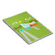 This Retro Palm Springs House with Car Notebook is a mid century modern lover’s dream. The minimalist art design features a sleek orange and glass house with a dramatically sloping checkmark shape roof. The red door offsets the orange stone planter filled with greenery and the decorative turquoise cinderblock privacy screen. Staggered concrete blocks form the perfect walkway through the lush, green lawn. A white carport offers shelter to a turquoise and white classic 1950’s car with fins. The car is perfect for driving around the green, rounded mountains in the distance. The kitschy 1960’s style house looks like a shady oasis from the hot, Palm Springs sun.