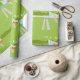 This Retro Palm Springs House with Car Wrapping Paper is a mid century modern lover’s dream. The minimalist art design features a sleek orange and glass house with a dramatically sloping checkmark shape roof. The red door offsets the orange stone planter filled with greenery and the decorative turquoise cinderblock privacy screen. Staggered concrete blocks form the perfect walkway through the lush, green lawn. A white carport offers shelter to a turquoise and white classic 1950’s car with fins. The car is perfect for driving around the green, rounded mountains in the distance. The kitschy 1960’s style house looks like a shady oasis from the hot, Palm Springs sun.