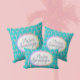 This Palm Springs Blue throw pillow with pastel palm trees is so much fun! Playful multicolor soft hues on a vibrant turquoise background invoke the midcentury modern vibe of the desert oasis Palm Springs, California. You can edit the text with your own message!