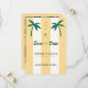 Set the tone for your tropical celebration with this Retro Palm Tree Monogram Tropical Beach Wedding Save the Date. Featuring yellow sand colour stripes, editable colour palm trees, and space for a photo and wedding website on the back, it’s perfect for a destination wedding in Hawaii, Mexico, or any coastal location. Vibrant, cheerful, and upbeat, this design brings a playful touch to your special day!