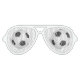 Party sunglasses are shown in white in the aviator style with a sports soccer ball print on the lenses.