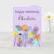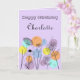 Retro style birthday card, line drawing flowers on a pastel background with circles in retro pastel colours.