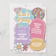 pastel retro birthday invitation with hearts, daisies, disco ball and chequered background.