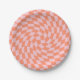 Retro Pastel Peach Checks Warped Chequerboard Paper Plate