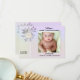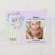 Announce the arrival of your baby with this stylish birth announcement card, featuring a cherished photo of your child set against a retro pastel lilac floral backdrop. Personalise it with your own text in a script or different style, creating a lovely gender-neutral design.