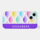 Brighten your everyday style with this vibrant, multi-colour wave design. The pattern features a series of soft, flowing arcs in a beautiful spectrum of lavender, mint, blush pink, and sunny yellow, creating a cheerful retro aesthetic. A bold purple side panel provides a striking contrast and serves as the perfect canvas for a personalised name in clean, modern white block lettering. This high-quality design combines a playful, whimsical feel with a polished finish, making it a standout choice for anyone who loves a pop of colour. The seamless blend of geometric shapes and a soft pastel palette offers a fresh, contemporary take on classic vintage motifs.