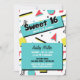 Fun sweet sixteen invitation for a 90s themed party featuring a retro pattern in yellow, red, and turquoise.