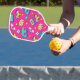 Stand out from the crowd with this fun colourful, bold and bright Retro Pattern Pickleball Paddle. A fun 80's style cartoon design featuring rainbows, lollipops, rollerskates, cassette tapes and old skool stereos in a mix of magenta pink, yellow, lilac and blue colours. A unique and trendy design, you will know which pickleball paddle is yours!